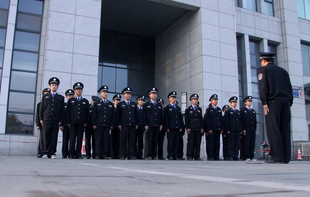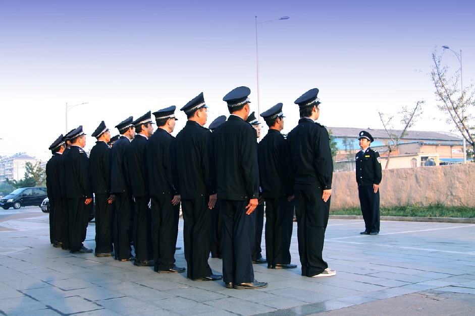 功輝大廈管理處保安堅(jiān)持晨訓(xùn)制度